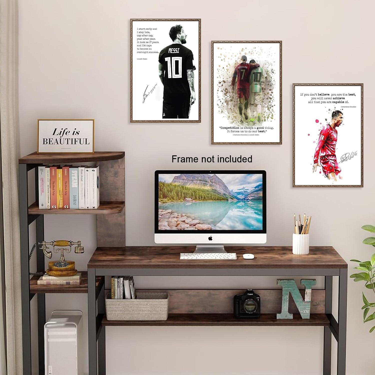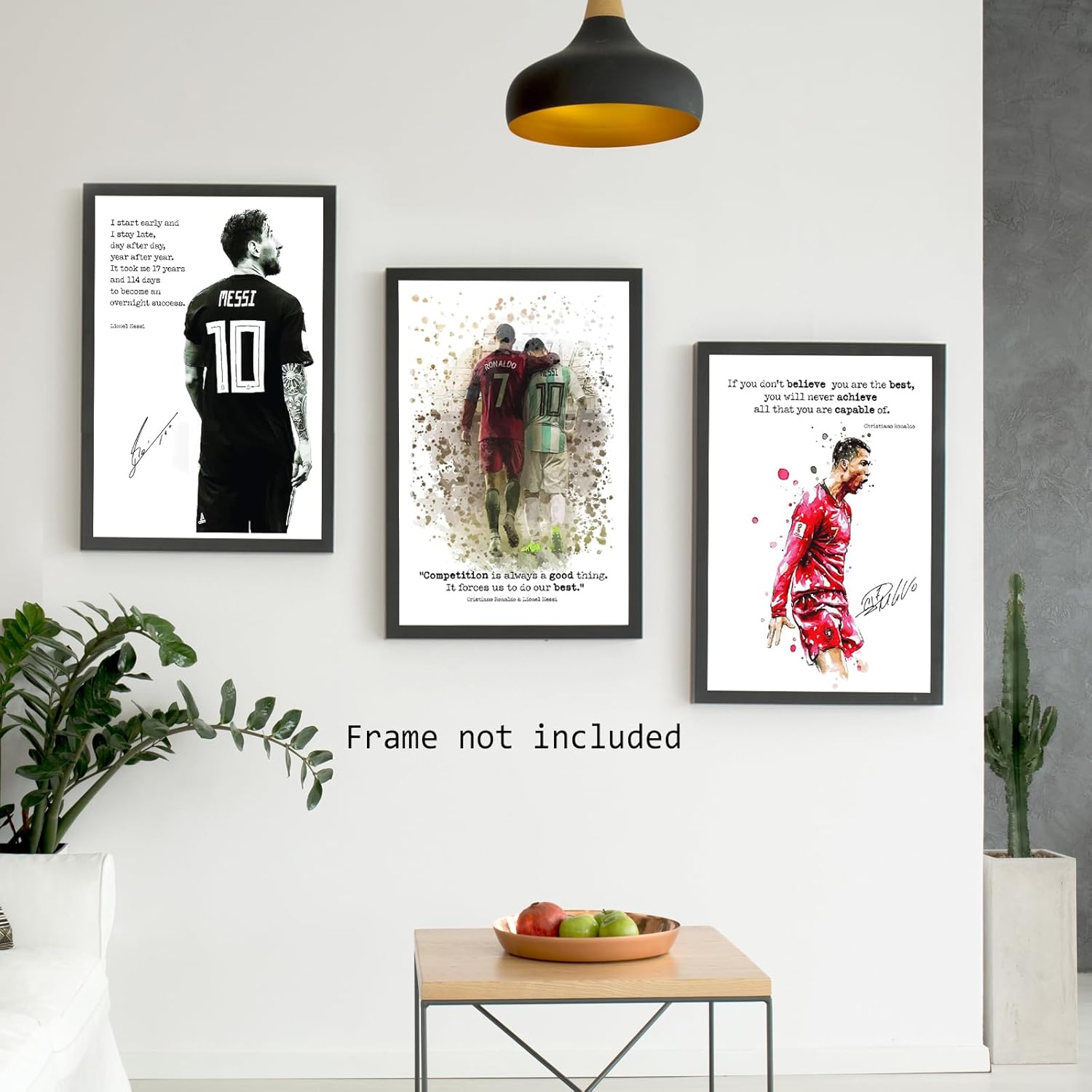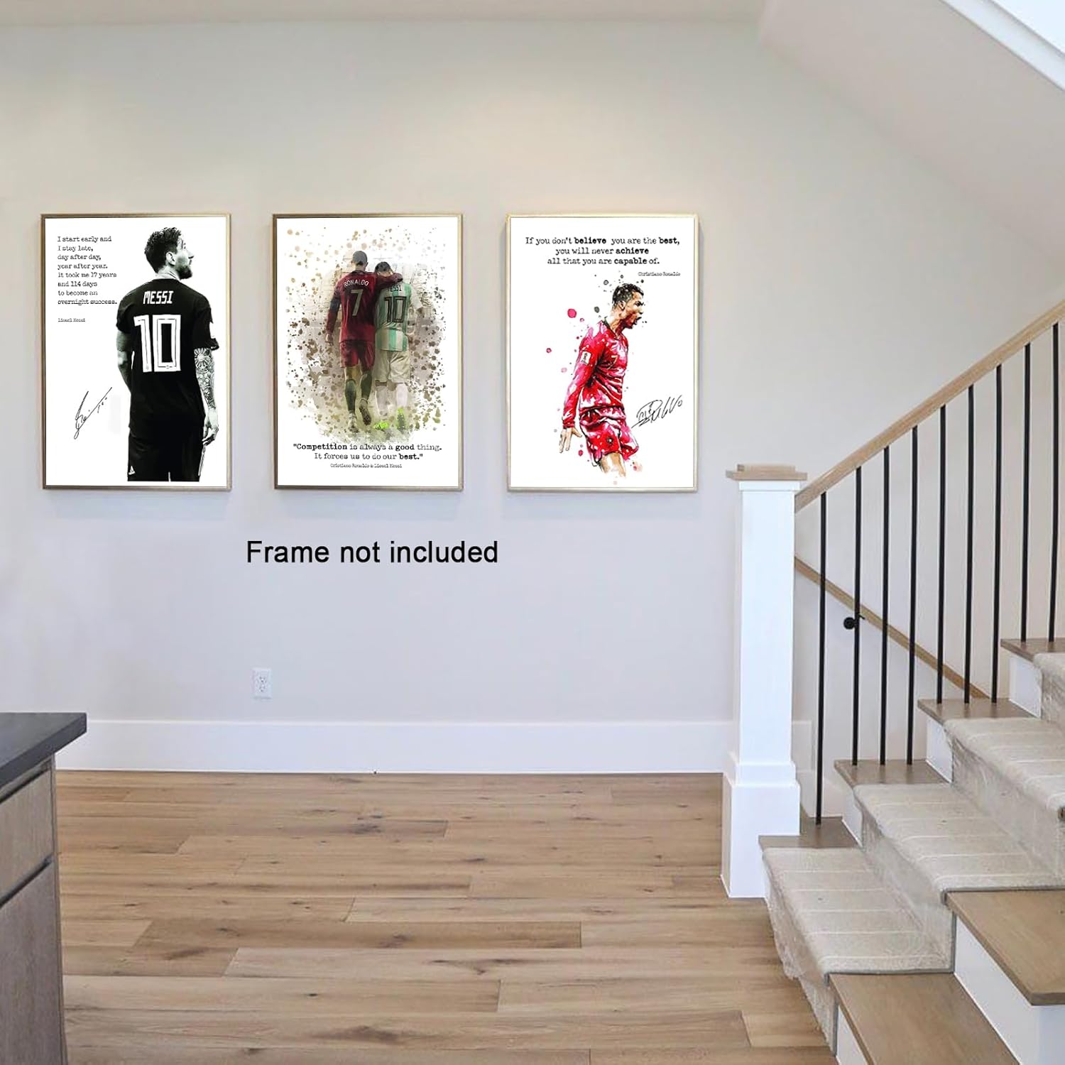 Generic Messi And Ronaldo Posters for Boys Bedroom Motivational Soccer Superstar Canvas Wall Art Set of 3 Sports Themed Wall Decor for Livingroom Fans Gift 8x12 inch Unframed