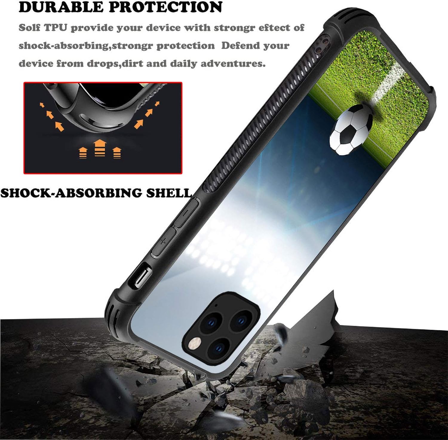 CARLOCA Compatible with iPhone 12 Mini Case,Football Soccer Field for Girls,Graphic Design Shockproof Anti-Scratch Drop Protection Case for iPhone 12 Mini