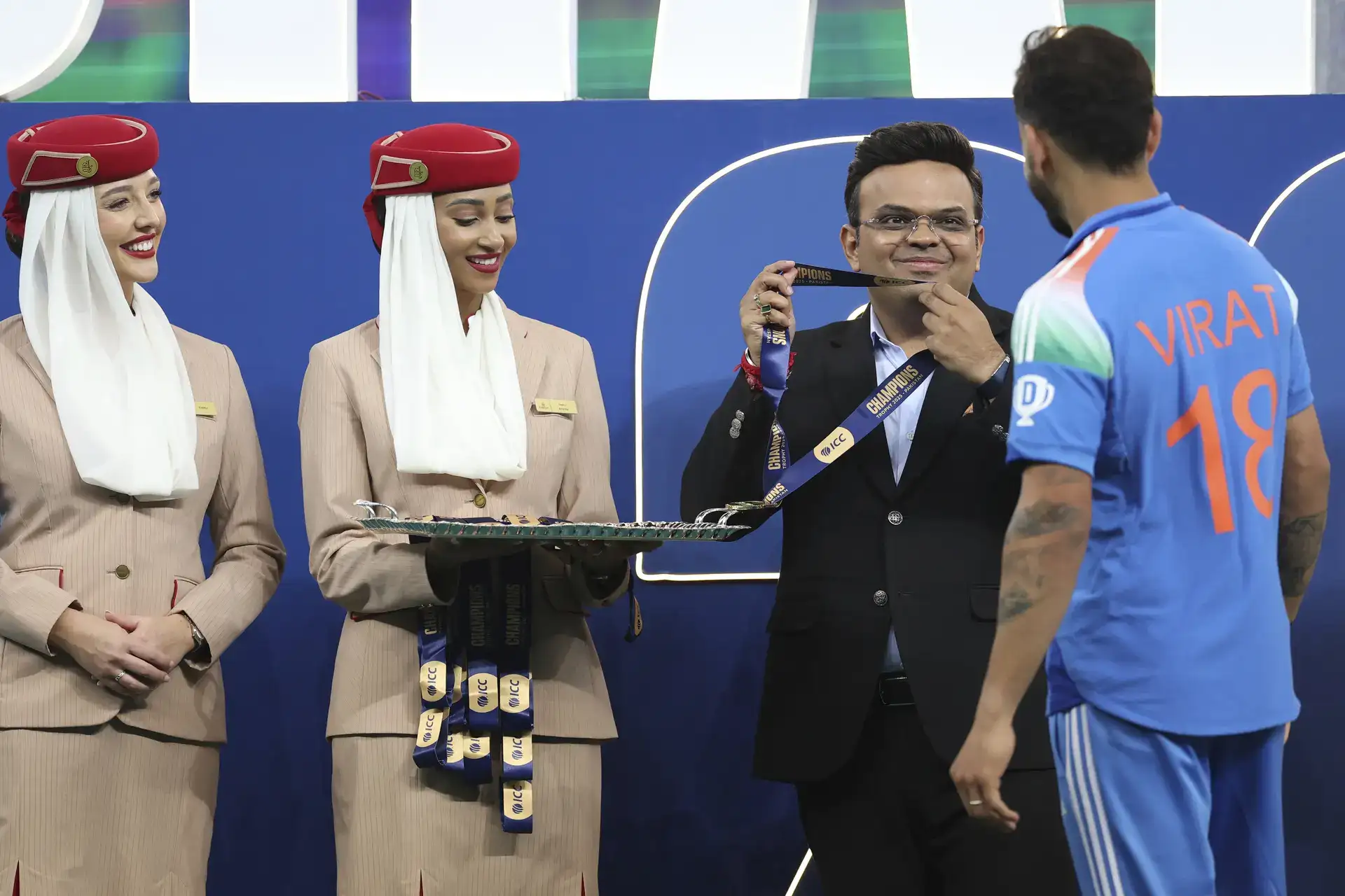 BCCI president Binny presented the white jackets to India and the medals to match officials, while ICC chairman Shah handed the trophy to Rohit Sharma and gave the medals to the Indian players.